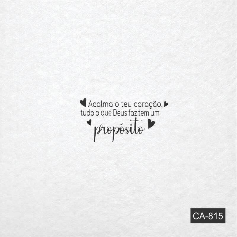 CARIMBO FRASE ACALMA TEU CORAÇÃO. TUDO O QUE DEUS FAZ TEM UM PROPÓSITO